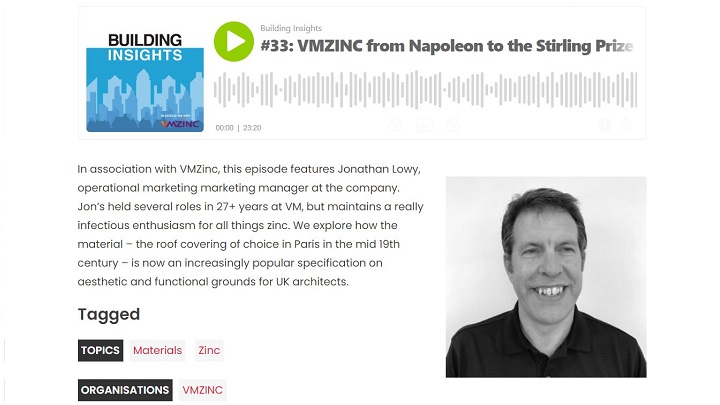 Building Insights in association with VMZINC, this episode features Jonathan Lowy, operational marketing marketing manager at the company.