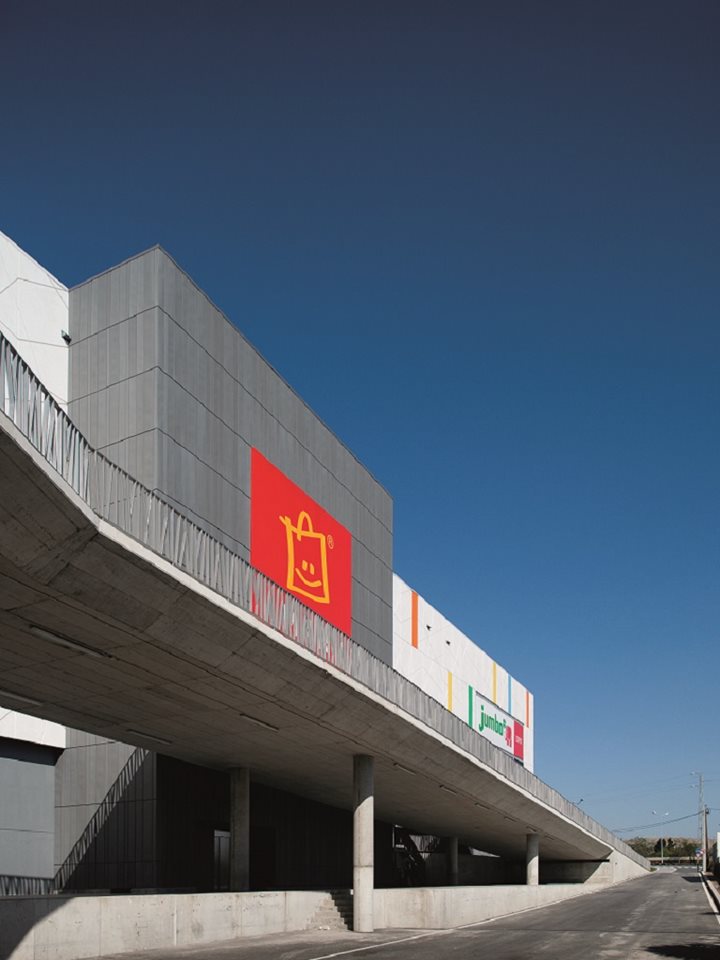 Pour ce projet de centre commercial à Matoshinhos, ville située au nord de Porto au Portugal, l’architecte Adriano Callé Lucas a cherché à assembler les contraires : « Nous devions, dans un même lieu, associer deux grandes marques de vente au détail proposant des produits très différents, des petits commerces et une zone de loisirs avec restaurants et cinéma ».